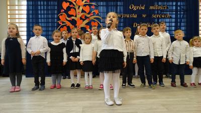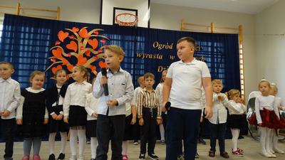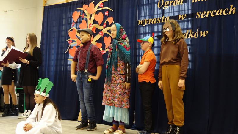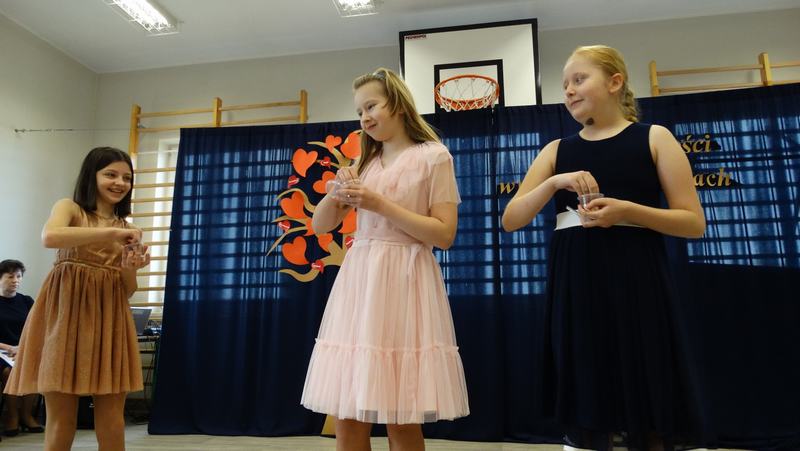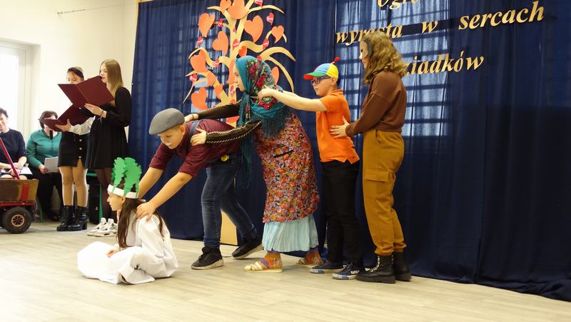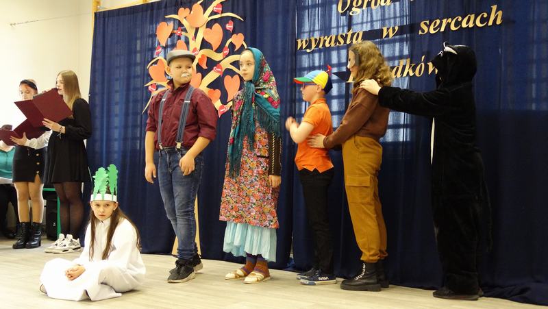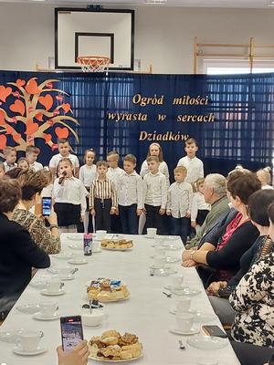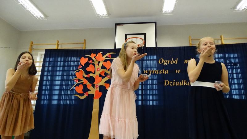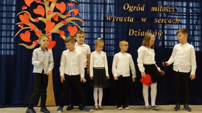 Klasy od czwartej do ósmej przedstawiły program słowno- muzyczny oraz pełną humoru inscenizację ,,Rzepki”. Niejednej babci i dziadkowi łezka zakręciła się w oku! To były naprawdę wyjątkowe chwile, pełne uśmiechu, radości i dumy. Szczęśliwe i rozpromienione twarze babć i dziadków po raz kolejny ukazały nam, jak ważne są takie spotkania i wspólnie spędzone chwile z wnukami. Na koniec tego wyjątkowego dnia dzieci zaśpiewały „Sto lat” i wręczyły swoim ukochanym babciom i dziadkom własnoręcznie przygotowane upominki i laurki. Po części artystycznej, obecna na uroczystości pani dyrektor Bożena Małecka złożyła serdeczne życzenia zaproszonym gościom i podziękowała małym artystom za przygotowanie uroczystości. Po części oficjalnej niecodzienni goście zostali zaproszeni na słodki poczęstunek, przygotowany przez rodziców.