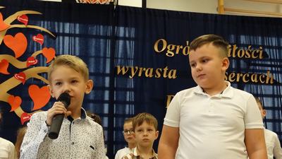 (2024-01-23) Kiedyś każdy z nas był dzieckiem i pamięta, jak ważną rolę w naszym życiu odgrywają dziadkowie. Obchodzone 21 stycznia Święto Babci i dzień później Święto Dziadka to symboliczna uroczystość w kalendarzu Szkoły Podstawowej w Zamościu. Tak naprawdę każdego dnia w roku, dziadkowie myślą i troszczą się o swoje wnuki. To właśnie oni potrafią cierpliwie wysłuchać zwierzeń i marzeń, które rodzą się w głowach dzieci. W tym roku Święto Babć i Dziadków w naszej szkole odbyło się 23 stycznia. Dzieci z oddziału przedszkolnego wraz z uczniami klasy pierwszej i drugiej przygotowały dla nich specjalny program artystyczny - recytowały wiersze, śpiewały piosenki i tańczyły.