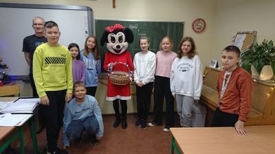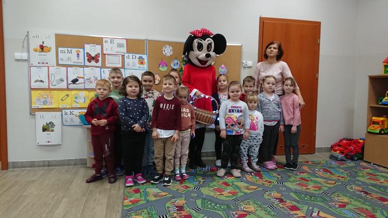 W poniedziałkowy poranek w świąteczny nastrój wprowadziły nas odwiedziny postaci znanej na całym świecie -Myszki Minnie. Tym razem nasza bohaterka miała mikołajkowy strój i świątecznie ubrany kosz pełen słodyczy.