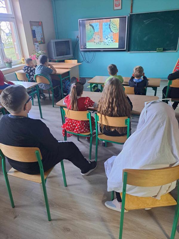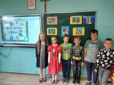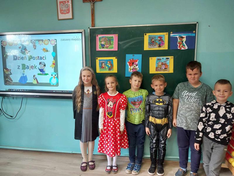 W dniu 24 listopada świętowaliśmy Międzynarodowy Dzień Postaci z Bajek. Wszystkie dzieci miały okazję przenieść się na chwilę w magiczny świat swoich ulubionych bajkowych postaci. W szkole pojawili się bohaterowie różnych bajek. Spotkać można było Teletubisie, Mario, Batmana, Sąsiada i innych bohaterów bajek. W tym dniu uczniowie mieli możliwość obejrzeć dawne dobranocki, które w dzieciństwie oglądali ich rodzice, a nawet dziadkowie. Z uwagą śledzili przygody Żwirka i Muchomorka, Profesora Gąbki i Smoka Wawelskiego, Bolka i Lolka. Ten barwny i wesoły dzień przypomniał wszystkim, jak ważne są bajki w życiu każdego dziecka.