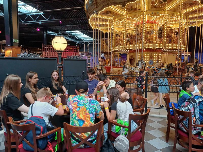 17 czerwca uczniowie naszej szkoły wybrali się do tematycznego parku rozrywki Mandoria w Rzgowie. Znaleźli tam wiele atrakcji pod dachem, w tym roller-coastery, karuzele, zjeżdżalnie, łódki na wodzie, labirynty i wiele innych. To tutaj renesansowa Europa łączy się z nowoczesnością, a XVI-wieczne miasto handlowe zmienia się w park rozrywki, dzięki czemu uczestnicy wycieczki poczuli się, jakby przenieśli się w czasie. Wszyscy bawili się znakomicie i nie mieli czasu na nudę. Dali się porwać przygodzie, korzystając z mnóstwa atrakcji. To niezwykłe miejsce zagwarantowało im wspaniałą zabawę i masę niesamowitych emocji. Czas spędzony w tym fantastycznym miejscu pozostanie wyjątkowym wspomnieniem.