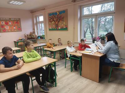 Uczniowie klasy I i II chętnie wysłuchali opowiadania pt. „Dronom wstęp wzbroniony – czyli prawo do prywatności ” z książki „Opowieści o prawach dziecka ” autorstwa Marka Michalaka. Wspólnie też powtórzyli słowa mantry: Jestem ważny! Jestem mądry! Jestem wyjątkowy! Jestem wystarczający!