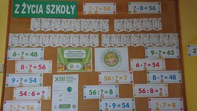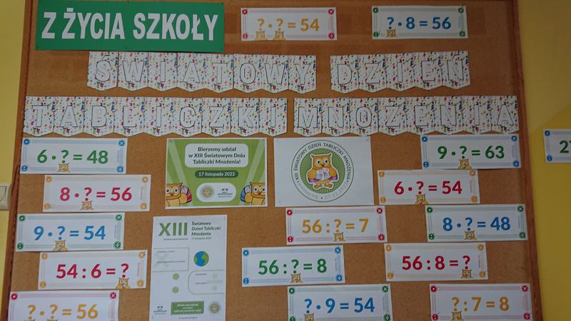 17 listopada 2023 roku obchodziliśmy w naszej szkole Światowy Dzień Tabliczki Mnożenia. Głównym celem tej akcji było propagowanie zabawowej formy nauczania-uczenia się matematyki. Miała ona zachęcić do przypomnienia sobie tabliczki mnożenia w przyjemny i niecodzienny sposób. Uczniowie utrwalali tabliczkę mnożenia przez cały wrzesień, a w dniu wydarzenia mogli się sprawdzić, zdając egzamin ustny i pisemny. Uczniowie przygotowywali również plakaty promujące tabliczkę mnożenia oraz gazetkę tematyczną.