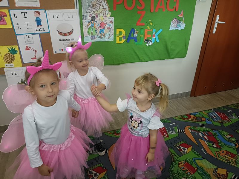 (2023-11-06) 5 listopada to Międzynarodowy Dzień Postaci z Bajek. Wybrana data nie jest przypadkowa, jest to dzień urodzin jednego z największych twórców bajek - Walta Disneya. Z tej okazji Przedszkolaki, w poniedziałek 6 listopada przyszły do przedszkola w bajkowych strojach. Wysłuchały fragmentów znanych bajek, a następnie rozpoznawały ich tytuły, dobierały ilustracje, grały w "bajkowe" gry, układały puzzle z postaciami z bajek. Wesoło bawiły się przy muzyce. Ten wyjątkowy dzień był doskonałą okazją do świetnej zabawy.