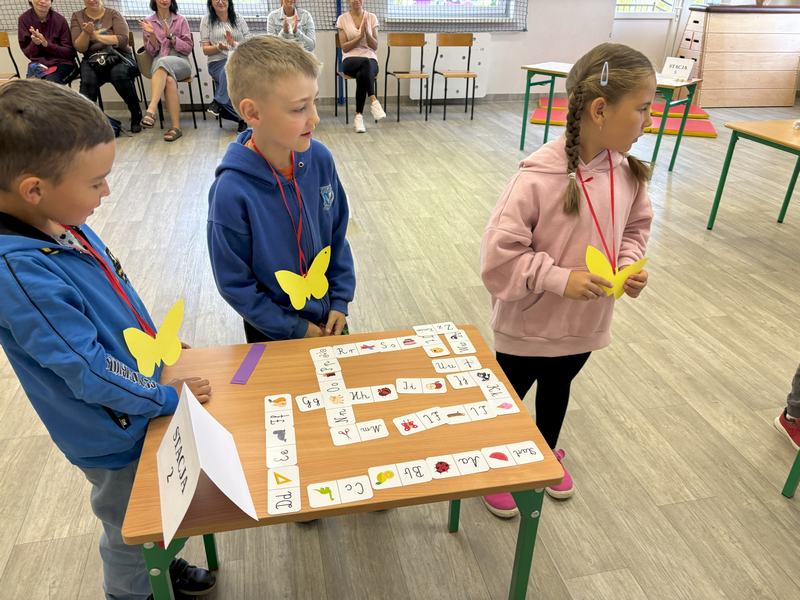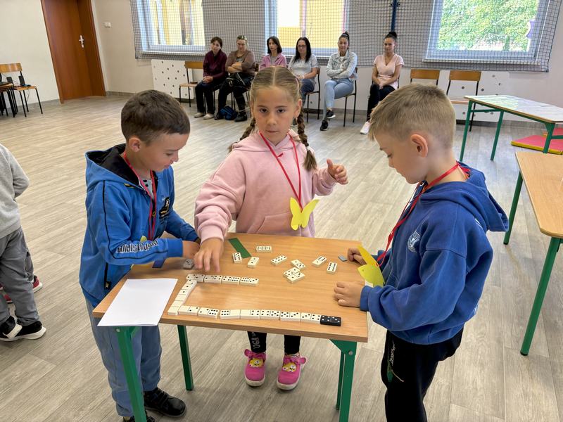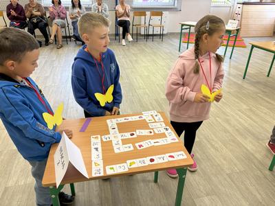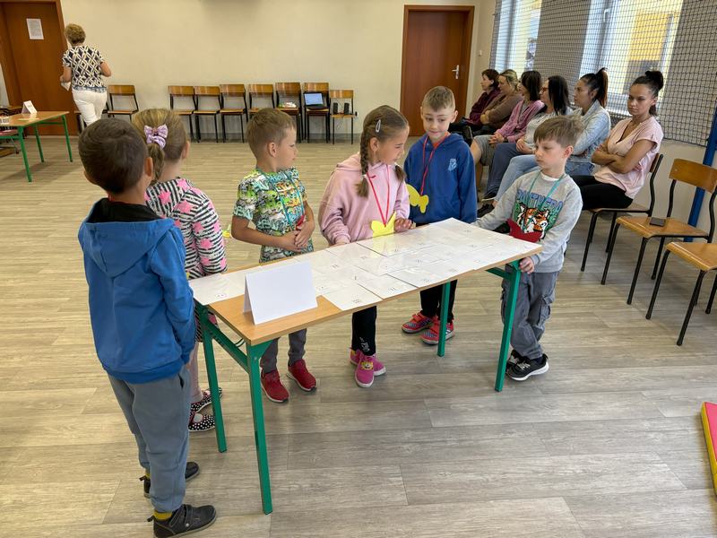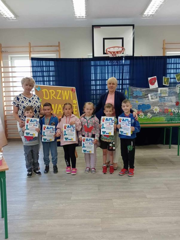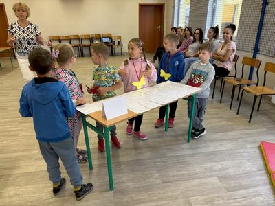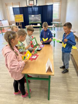 14 czerwca w naszej szkole odbyły się Drzwi Otwarte dla dzieci sześcioletnich – przyszłych uczniów klasy pierwszej. Głównym celem tego przedsięwzięcia było rozwijanie postaw społeczno - moralnych i integracja dzieci podczas wspólnie wykonywanych zadań. Po przekroczeniu progu sali gimnastycznej dzieci mogły wybrać kolorowego motyla. W ten sposób przedszkolaki zostały podzielone na grupy. Przyszli uczniowie byli bardzo zaciekawieni i z dużym zaangażowaniem rozwiązywali zadania o różnym stopniu trudności.