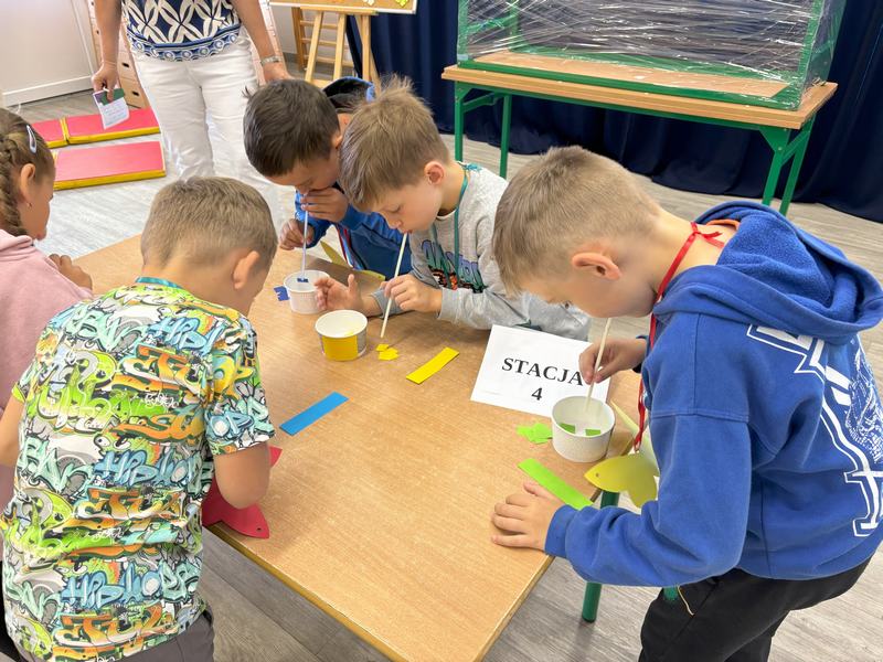 Przechodząc od stacji do stacji każde dziecko mogło doświadczyć sukcesu. Na koniec za wzorową pracę otrzymali kolorowe dyplomy.
