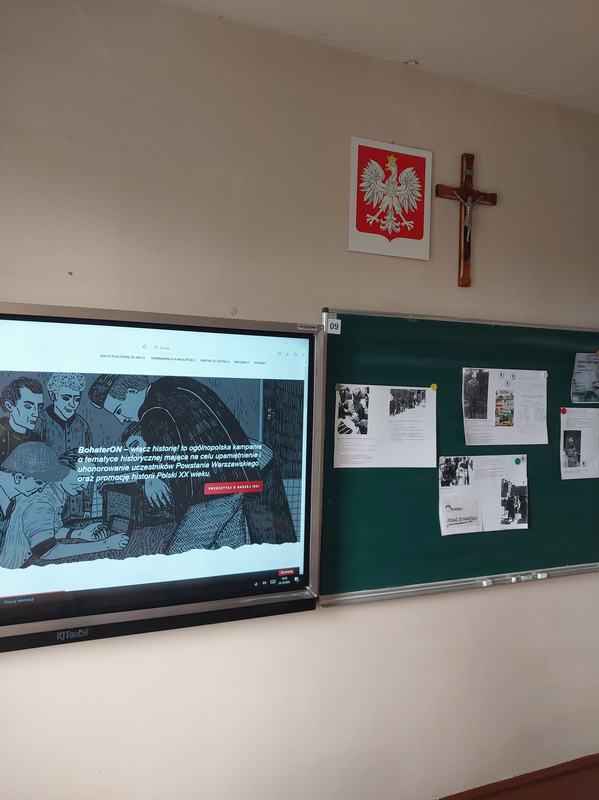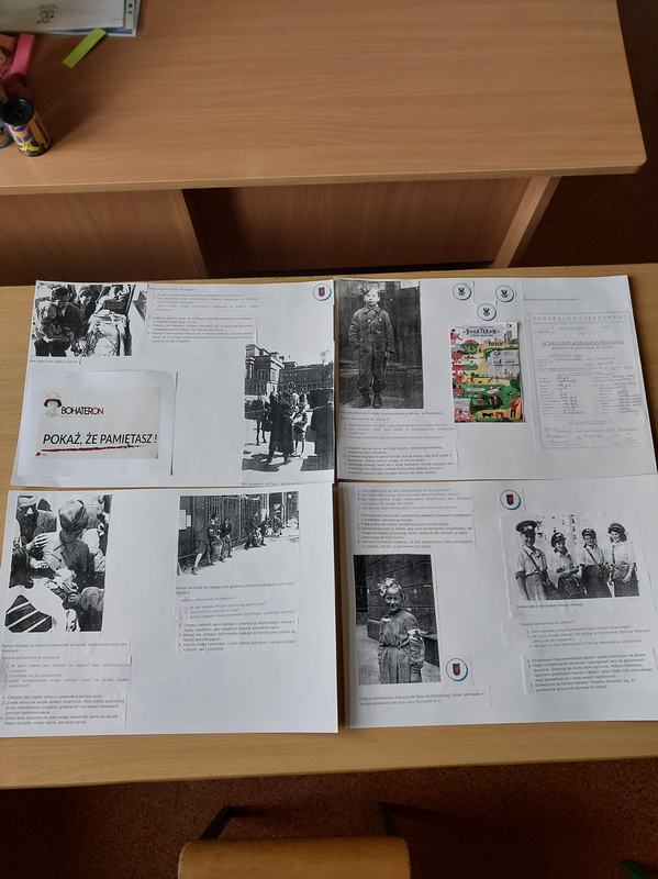 (2023-10-30) Na przełomie października i listopada 2023r. uczniowie klasy VII i VIII wzięli udział w akcji „BohaterON. Włącz historię!”. Ta ogólnopolska kampania o tematyce historycznej, ma na celu upamiętnienie i uhonorowanie uczestników Powstania Warszawskiego oraz promowanie historii Polski XX wieku. Zajęcia odbyły się na podstawie scenariuszy przygotowanych przez organizatorów. Zapoznaliśmy się z filmami edukacyjnymi dotyczącymi Powstania Warszawskiego, a następnie odsłuchaliśmy opowiadania pod tytułem ,,Uparte serce tego miasta". Uczniowie pracując w grupach tworzyli plakaty, redagowali notatki do gazety, a następnie przedstawiali swoje prace.