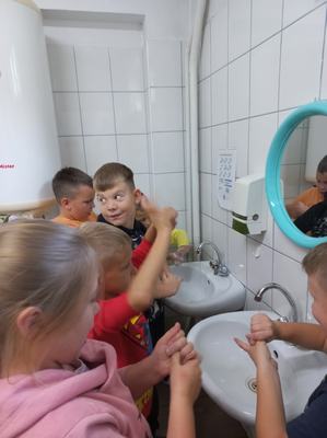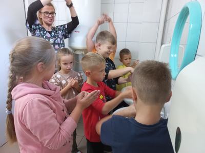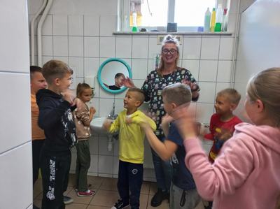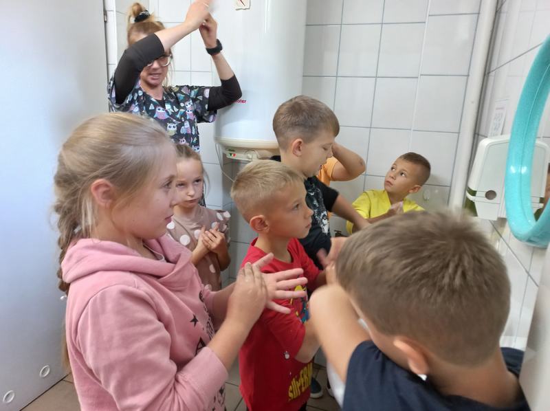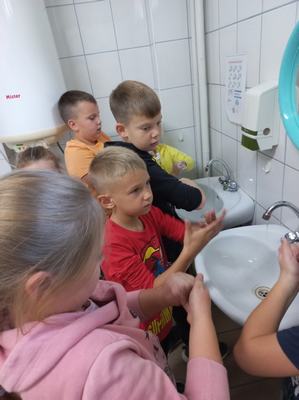 Wspólnie z Panią pielęgniarką, która opowiedziała nam, jak ważne jest dbanie o higienę rąk, kiedy powinniśmy je myć i dlaczego. Dowidzieliśmy się , że mycie rąk to nie tylko kwestia ochrony siebie, ale także innych osób wokół nas. Możemy być nosicielami wirusów i bakterii, nawet jeśli sami nie wykazujemy objawów choroby. Dlatego ważne jest, abyśmy wszyscy praktykowali regularną higienę rąk.