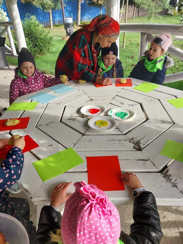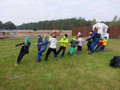 10 października br. uczniowie klasy pierwszej, drugiej oraz dzieci z oddziału przedszkolnego odwiedziły w miejscowości Czempisz "Zielny Dworek". Dzieci z dużym zaangażowaniem uczestniczyły w zajęciach. Celem warsztatów była przede wszystkim świetna zabawa - w roli głównej był oczywiście ziemniak i z nim związane zabawy ruchowe. Uczestnicy poznali historię ziemniaka na świecie oraz w naszym kraju. Rozwijali swoje zdolności manualne i kreatywność poprzez wykonywanie ciekawych prac. Były również zabawy z animatorką, slajmy, przejażdżka wozem po chrust.