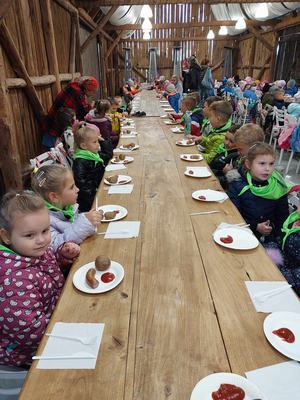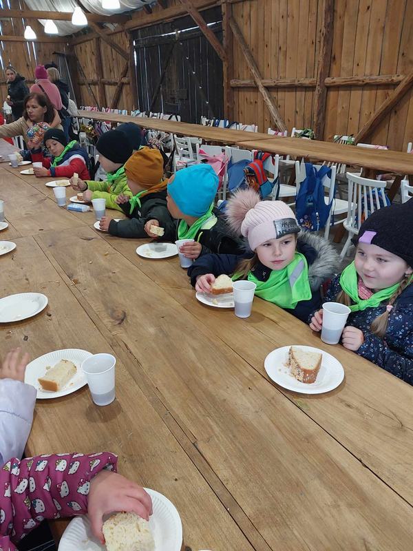 Następnie wybrali się na grzybobranie, podczas którego uczyli się rozpoznawać grzyby. Po świetnej zabawie odbyła się degustacja pieczonych ziemniaków, kiełbasek oraz drożdżowca. Moc atrakcji jaka czekała na łonie natury, była ogromna, przybliżyła życie na wsi uczestnikom wycieczki.