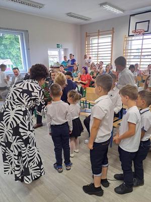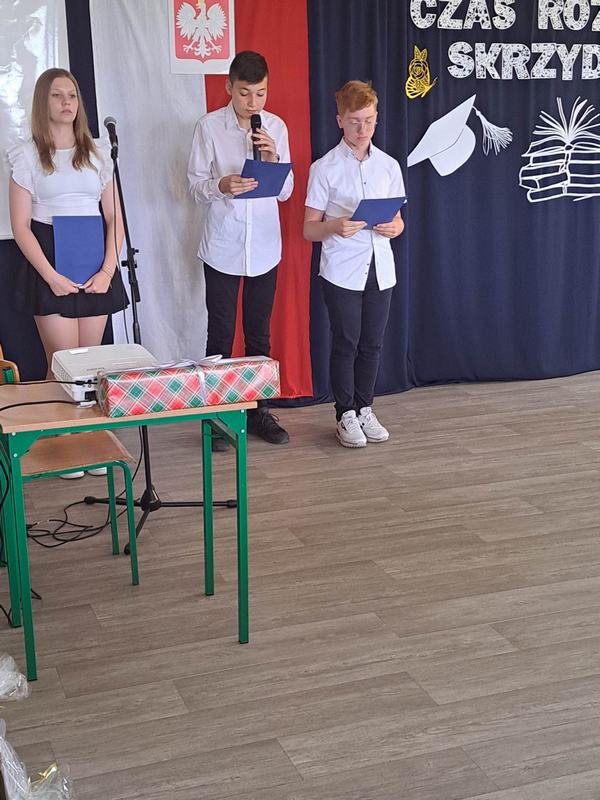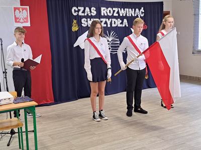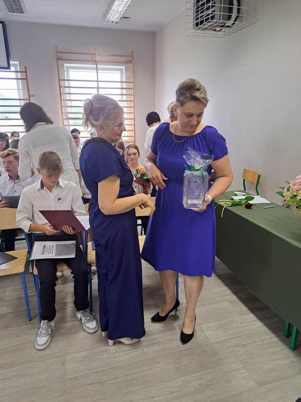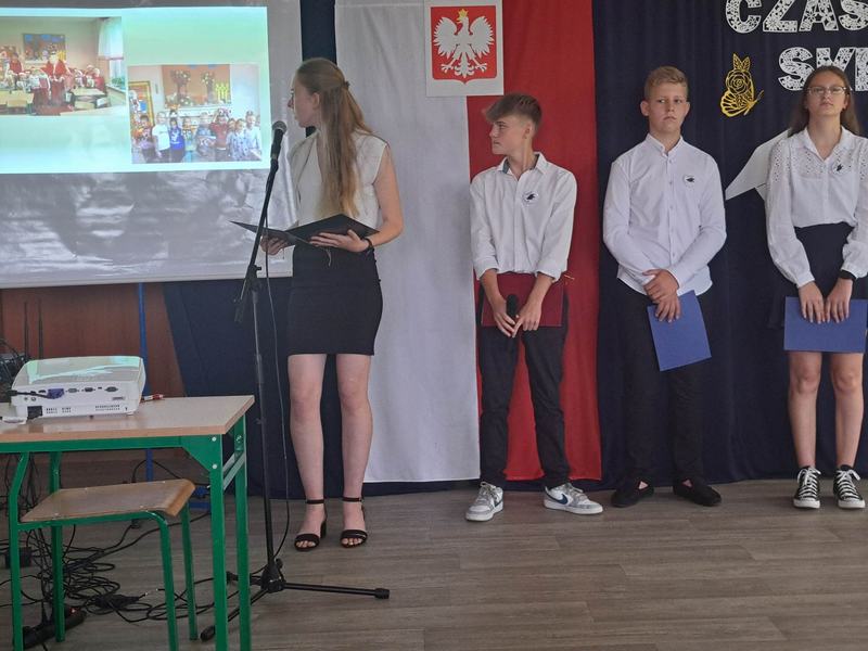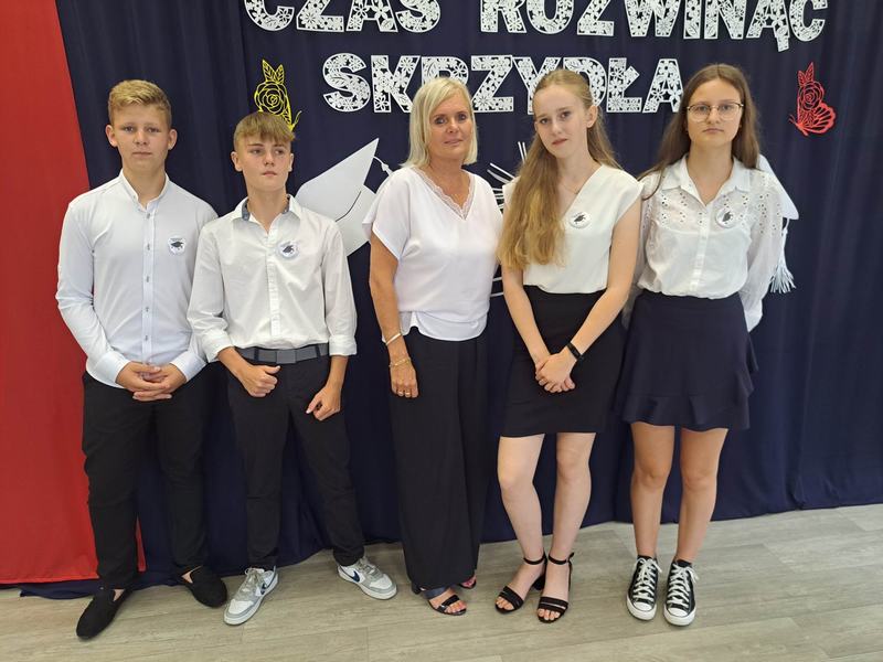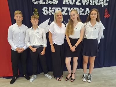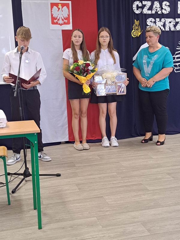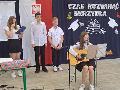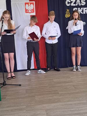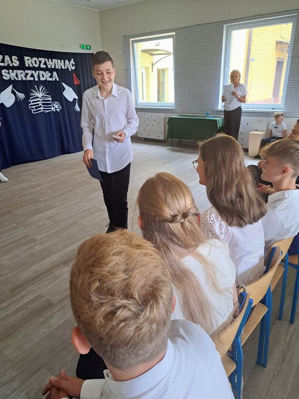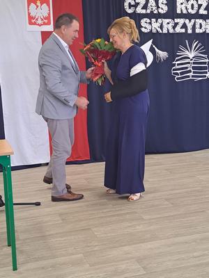(2023-06-23) W piątek 23 czerwca 2023 roku, w Szkole Podstawowej w Zamościu odbyło się uroczyste zakończenie roku szkolnego 2022/2023 oraz pożegnanie tegorocznych absolwentów. Na uroczystości spotkali się uczniowie klas I – VIII oraz oddział przedszkolny. Pani Regina Zalejska w zastępstwie Pani Dyrektor Szkoły Janiny Siudzińskiej przywitała zebranych gości: Wójta Gminy Sieroszewice - Pana Anatola Piaskowskiego, Dyrektora Gminnego Zespołu Ekonomiczno-Administracyjnego Szkół – Panią Małgorzatę Olejnik, Proboszcza - Księdza Ryszarda Ryńca, Radnego Gminy Sieroszewice – Pana Tadeusza Zatylnego, Przewodniczącą Rady Rodziców - Panią Mariolę Panek, a także przedstawicieli Rady Rodziców, nauczycieli i pracowników szkoły, licznie przybyłych gości oraz uczniów. Uroczystość rozpoczęła się wprowadzeniem flagi państwowej i odśpiewaniem hymnu narodowego oraz hymnu szkoły.