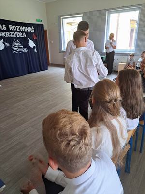 Część artystyczną rozpoczęli absolwenci szkoły, w której wyrazili wdzięczność dyrekcji, rodzicom, nauczycielom i wychowawczyni za trud wychowania i nauczania, za codzienną troskę, wyrozumiałość, cierpliwość i tolerancję. Powaga, z jaką odnieśli się do minionych lat wzruszyła wszystkich gości, a przede wszystkim rodziców, którzy towarzyszyli im w tym wyjątkowym dniu. Część artystyczna zakończyła się występem uczniów klasy siódmej, którzy na wesoło pożegnali absolwentów, nie zapomnieli również o drobnych upominkach dla kolegów i koleżanek opuszczających mury naszej szkoły. Spotkanie stało się także okazją do pożegnania Pani Janiny Siudzińskiej, która po wielu latach pracy na stanowisku Dyrektora Szkoły przechodzi na zasłużoną emeryturę. Również z żalem żegnamy się z Przewodniczącą Rady Rodziców Panią Mariolą Panek, której syn został absolwentem szkoły.