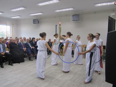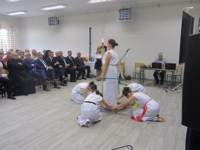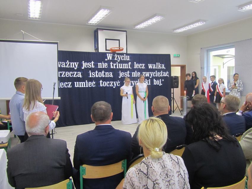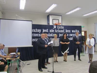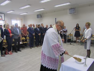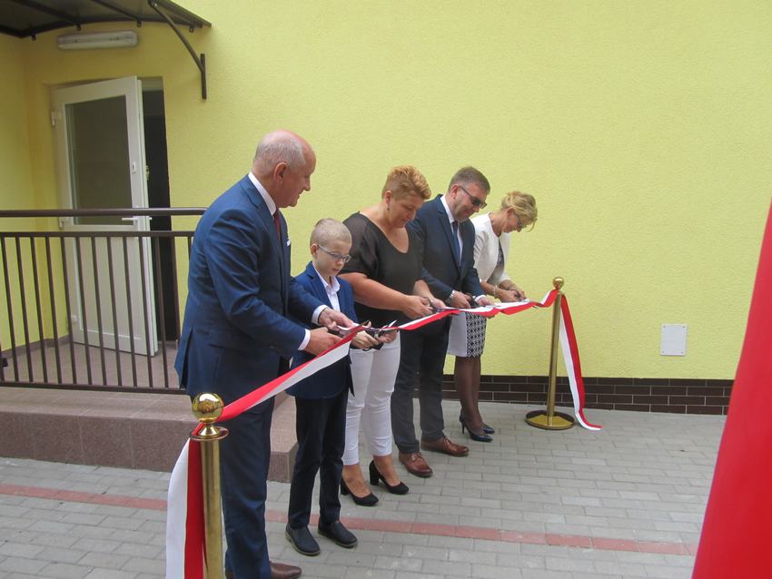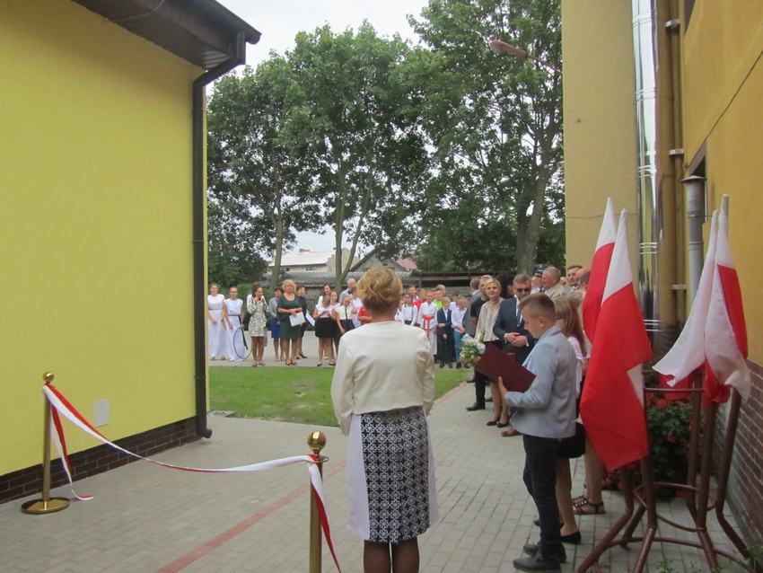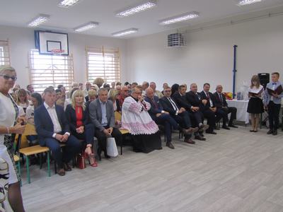 02 września 2019r. był dla całej społeczności szkolnej dniem wyjątkowym. W atmosferze ciepła, radości i wzruszenia nastąpiło nie tylko rozpoczęcie nowego roku szkolnego, ale również oficjalne i uroczyste otwarcie dobudowanego segmentu szkoły, w którym znajduje się sala gimnastyczna wraz z zapleczem, sala dla oddziału przedszkolnego z szatnią oraz sekretariat. Na ten dzień z niecierpliwością czekali uczniowie, rodzice i nauczyciele. W tym szczególnym momencie w dziejach szkoły zebrało się grono znamienitych osób. W uroczystości udział wzięli przedstawiciele władz samorządowych, kościelnych, dyrektorzy gminnych palcówek oświatowych, przyjaciele szkoły, pracownicy obsługi, nauczyciele, uczniowie i ich rodzice. Pani dyrektor szkoły Janina Siudzińska w swoim przemówieniu podkreśliła, iż stworzone warunki pozwolą dzieciom efektywniej poszerzać różne umiejętności, rozwijać zainteresowania, śmiało patrzeć w przyszłość. Oficjalnego otwarcia nowego segmentu szkoły, poprzez symboliczne przecięcie wstęgi, dokonali: Starosta Powiatu Ostrowskiego Paweł Rajski, Wójt Gminy Sieroszewice Anatol Piaskowski, Dyrektor Szkoły Podstawowej w Zamościu Janina Siudzińska, Przewodnicząca Rady Rodziców Mariola Panek oraz przedstawiciel uczniów Mikołaj Szmaj. Nowe obiekty zostały także poświęcone przez proboszcza Parafii Grabowskiej księdza kanonika Ryszarda Ryńca. Następnie w swoich przemówieniach zaproszeni goście gratulowali tak pięknego i nowoczesnego obiektu oraz życzyli wielu sukcesów sportowych i rozwijania talentów. Nie kryli radości z realizacji tej inwestycji, podkreślając jej znaczenie dla rozwoju młodzieży i mieszkańców okolicznych wsi. W dalszej części uczestnicy spotkania mieli okazję przyjrzeć się atrakcyjnemu programowi sportowo- artystycznemu przygotowanemu przez uczniów Szkoły Podstawowej w Zamościu. Po części oficjalnej Rada Rodziców zaprosiła wszystkich na poczęstunek. Oddanie do użytku nowego obiektu otwiera nowy etap w dziejach Szkoły Podstawowej w Zamościu.