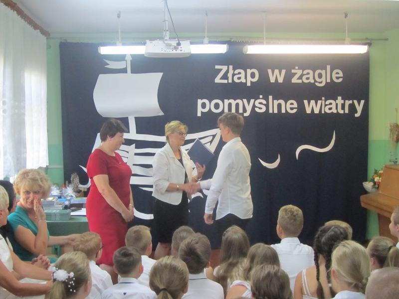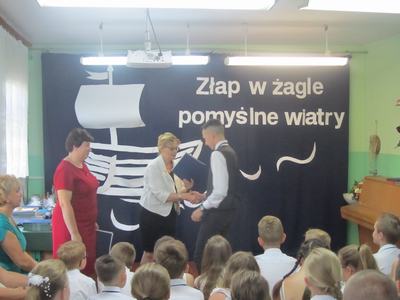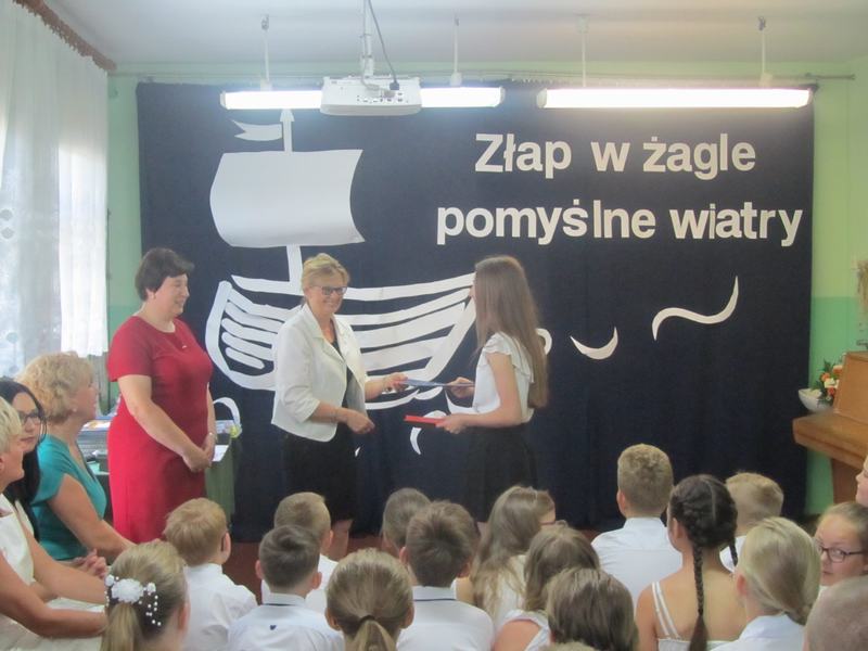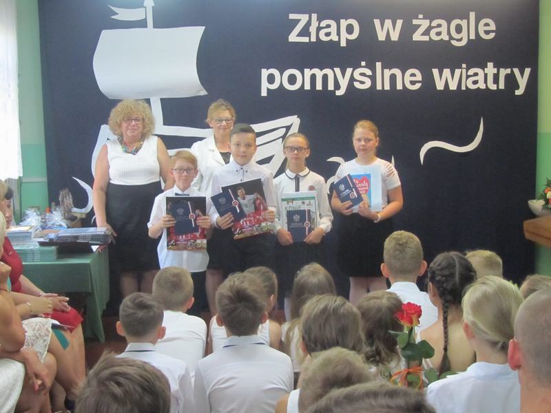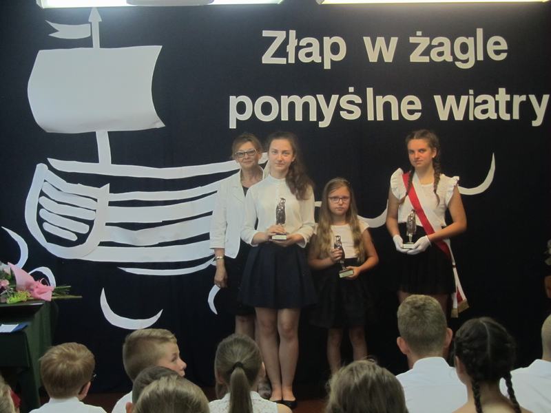 19 czerwca - na ten dzień czekali wszyscy uczniowie - zakończenie roku szkolnego! Punktualnie o godzinie dziewiątej uczniowie, rodzice i nauczyciele zgromadzili się w szkole. Pani dyrektor, - Janina Siudzińska powitała wszystkich zgromadzonych, gratulując osiągnięć edukacyjnych. Następnie, w asyście wychowawców poszczególnych klas, wręczyła nagrody książkowe, dyplomy oraz świadectwa z wyróżnieniem. Po rozdaniu nagród i świadectw laureaci konkursu Uczeń Roku zostali uhonorowani statuetkami. Tytuł "Ucznia Roku 2018/2019" zdobyły: