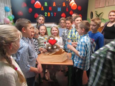 16.02.2017r. odbyła się w naszej szkole dyskoteka karnawałowo - walentynkowa dla uczniów klas I-VI. Przy dźwiękach największych przebojów wszyscy bawili się do wspaniale. W trakcie trwania zabawy zostały zorganizowane konkursy, które zapewniły wiele atrakcji i śmiechu, a uczestnicy otrzymywali nagrody.