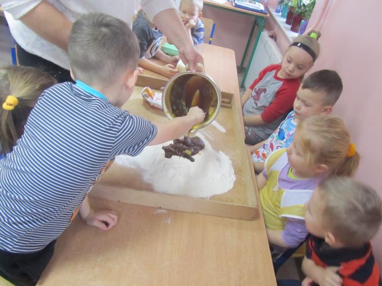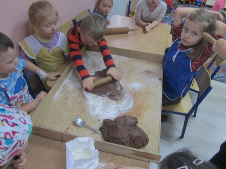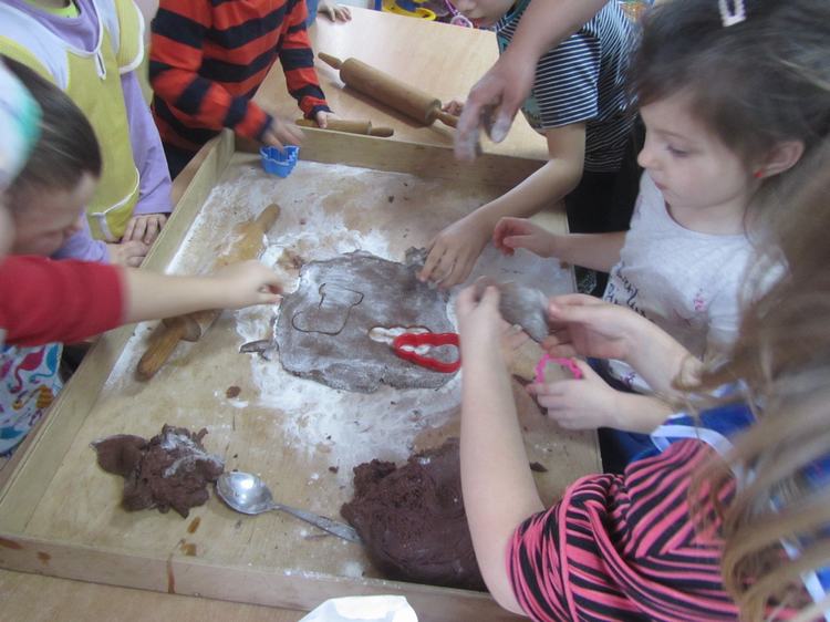 We wtorek, 13 grudnia dzieci z oddziału przedszkolnego, zgodnie z przedświąteczną tradycją wzięły się do pieczenia pierników. Najpierw pod kierunkiem jednej z mam przygotowały ciasto. Wszystkim się podobało się mieszanie składników i wygniatanie ciasta, ale największą przyjemność sprawiło wykrawanie foremkami różnorodnych kształtów i układanie ich na blaszkach. Następnego dnia dzieci dekorowały upieczone pierniki.