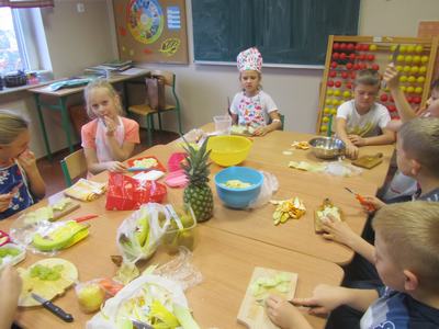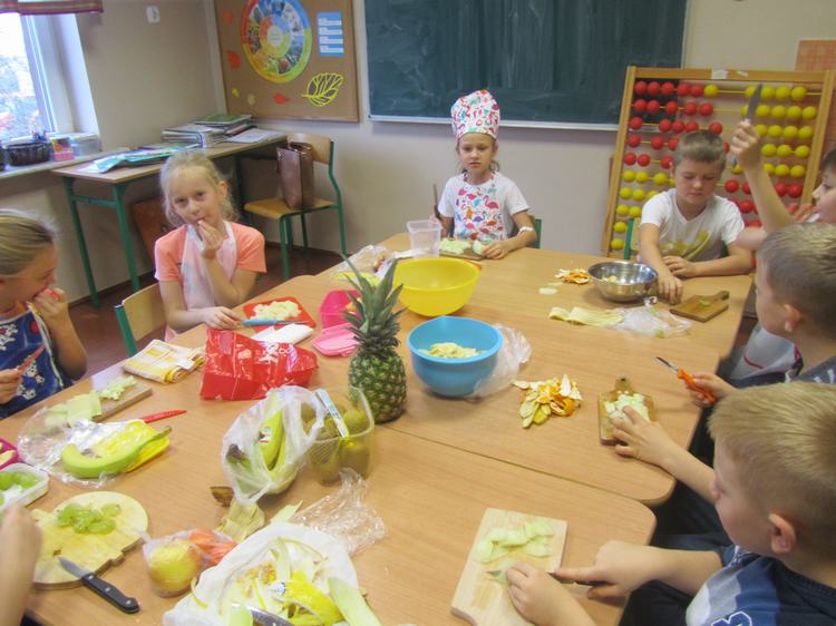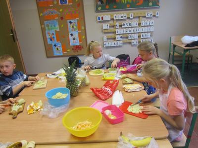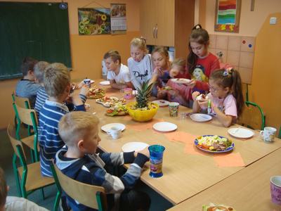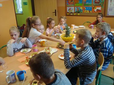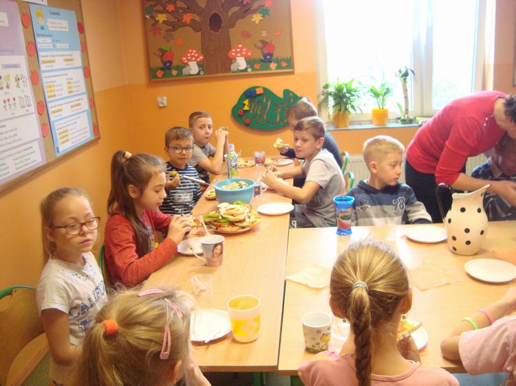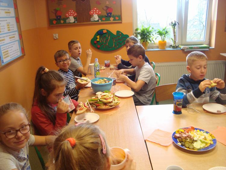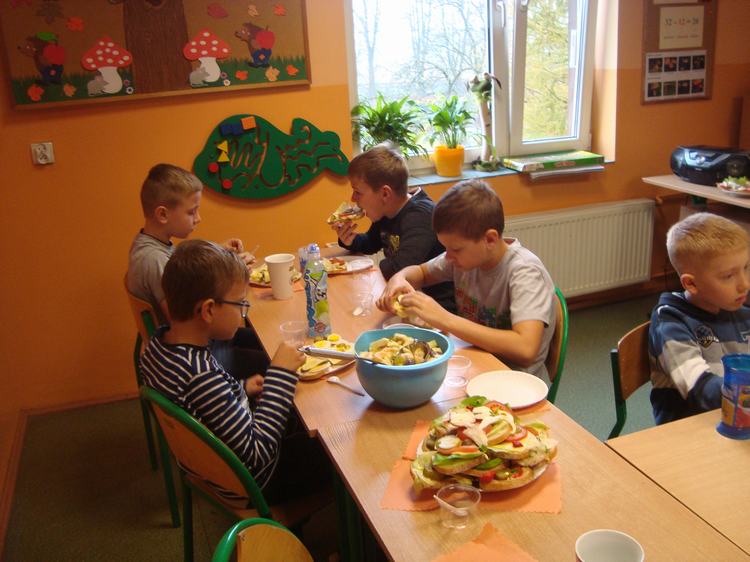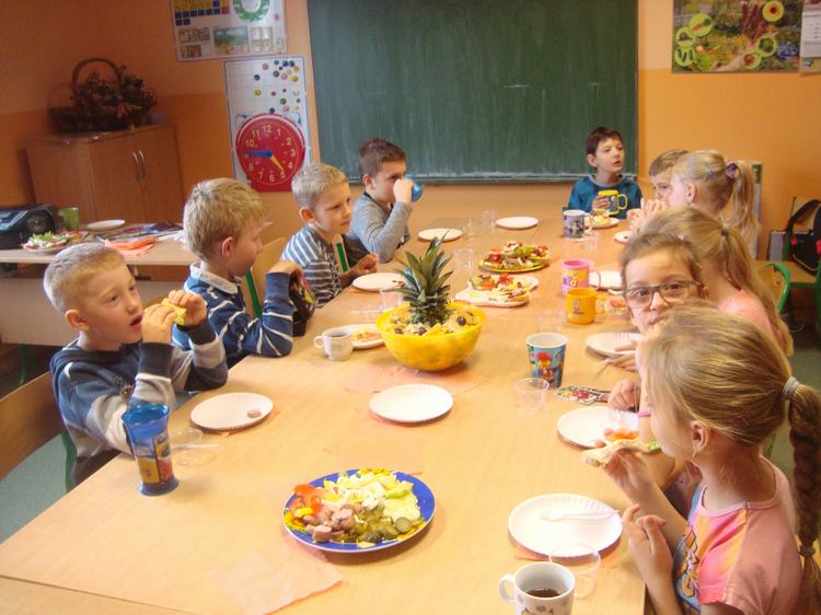8 listopada 2016 roku uczniowie naszej szkoły dołączyli do ogólnopolskiego śniadania pod hasłem "Śniadanie daje moc". Dzieci z klasy I i II przygotowały sałatkę owocową, a uczniowie klasy III pożywne kanapki. Następnie przy kolorowo nakrytym stole zjedli smaczne i zdrowe śniadanie. Wcześniej wychowawcy klas przeprowadzili pogadankę o znaczeniu tego posiłku dla zdrowia i rozwoju dzieci. Do akcji dołączyły również dzieci z oddziału przedszkolnego.