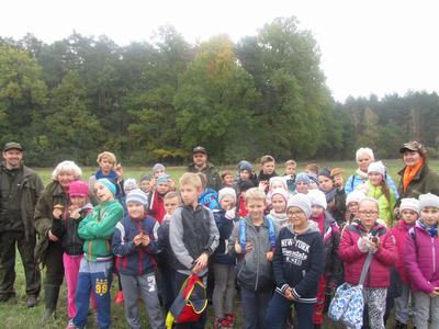 24 października 2016 roku, dzięki gościnności i zaproszeniu myśliwych wraz z leśnikami z Nadleśnictwa Taczanów, uczniowie naszej szkoły zwiedzili rezerwat "Niwę" i "Majówkę". Pani Anna Kędziora i pan Bartosz Wójkiewicz występujący z ramienia nadleśnictwa oraz leśniczy Leśnictwa Biskupice Dariusz Stendera bardzo ciekawie opowiadali o lesie i zwierzynie żyjącej w rezerwatach. Sporo ciekawostek przekazali o gatunkach drzew i roślinności jaka występuje oraz o ochronie lasu i gospodarce jaka jest prowadzona na terenach leśnych. Fascynujący spacer po rezerwatach połączony był z organizowaną przez Lasy Państwowe - akcją sprzątania lasu. Spacer po pięknych rezerwatach zakończył się przy wspólnym ognisku, kiełbaskach i słodyczach ufundowanych przez organizatorów spotkania. Wyjazd był bardzo udany, pełen wrażeń i na długo pozostanie w pamięci uczniów.