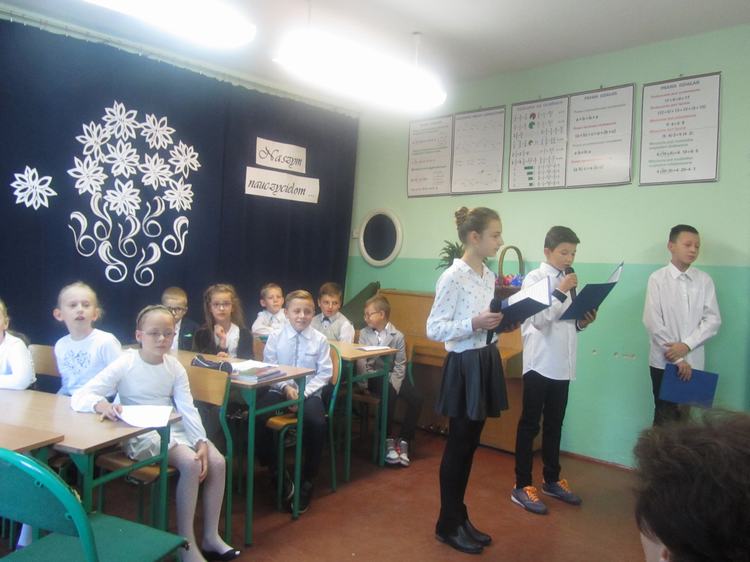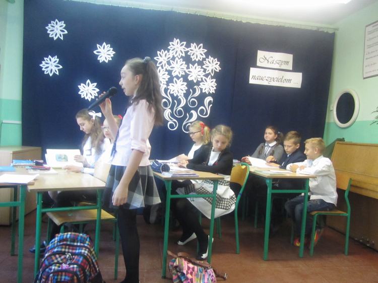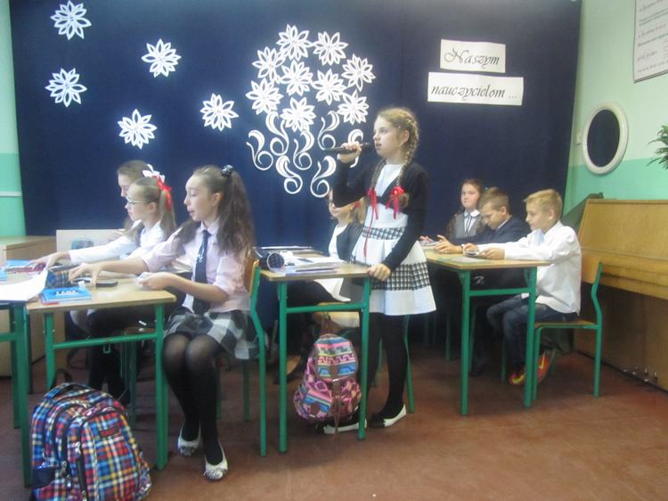 Dnia 14 października 2016 roku w odbyła się uroczysta Akademia z okazji Dnia Edukacji Narodowej. Uczniowie naszej szkoły przygotowali humorystyczne przedstawienie obrazujące pracę nauczycieli i zachowanie wychowanków oraz wiele ciekawych wierszy i piosenek. Część artystyczna podobała się wszystkim, o czym świadczyły gromkie brawa i słowa uznania. Wiele ciepłych i miłych słów popłynęło w kierunku nauczycieli. Uczniowie docenili i podkreślili swoją wdzięczność za codzienny trud pracy nauczyciela, jego poświęcenie, czujność i troskę o dobro wychowanków. Uroczystość przebiegała w miłej i radosnej atmosferze. Następnie uczniowie złożyli życzenia wszystkim pracownikom naszej szkoły, a samorząd uczniowski wręczył własnoręcznie przygotowane upominki. Na zakończenie pani dyrektor podziękowała wszystkim nauczycielom i pracownikom obsługi za pracę i zaangażowanie w życie szkoły oraz życzyła wielu sił i wytrwałości w wykonywaniu tego wyjątkowego zawodu.