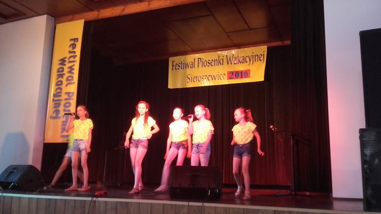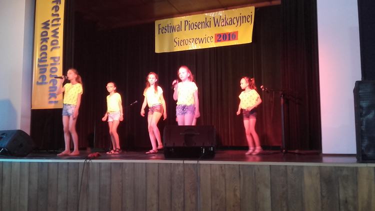 W piątek, 3 czerwca 2016 r. odbył się Festiwal piosenki wakacyjnej organizowany przez Gminny Ośrodek Kultury w Sieroszewicach. Nasza szkołę reprezentował zespół "Wakacyjne nutki" - uczennice z klasy II i III: Paulina Nowak, Katarzyna Skrobańska, Amelia Grygowska, Karolina Krysiak i Julia Spalona. Zespół zaśpiewał piosenkę pt. "Na wakacje". Uczennice z klasy IV i V : Marika Pilarczyk, Dominika Agata, Aleksandra Moś, Natalia Zatylna, Weronika Szmaj i Milena Miś wystąpiły w zespole pod nazwą "Gama" i zaśpiewały piosenkę pt. "Idą wakacje".