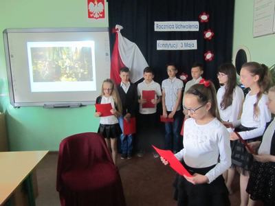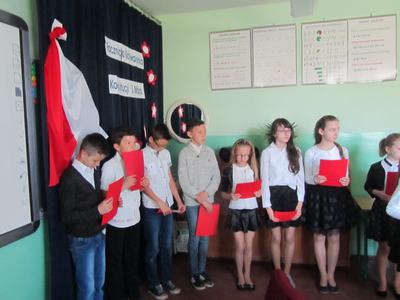 Uczniowie klas IV-VI wraz z opiekunem Jolantą Podlas i Natalią Walczak przygotowali krótką część artystyczną.
