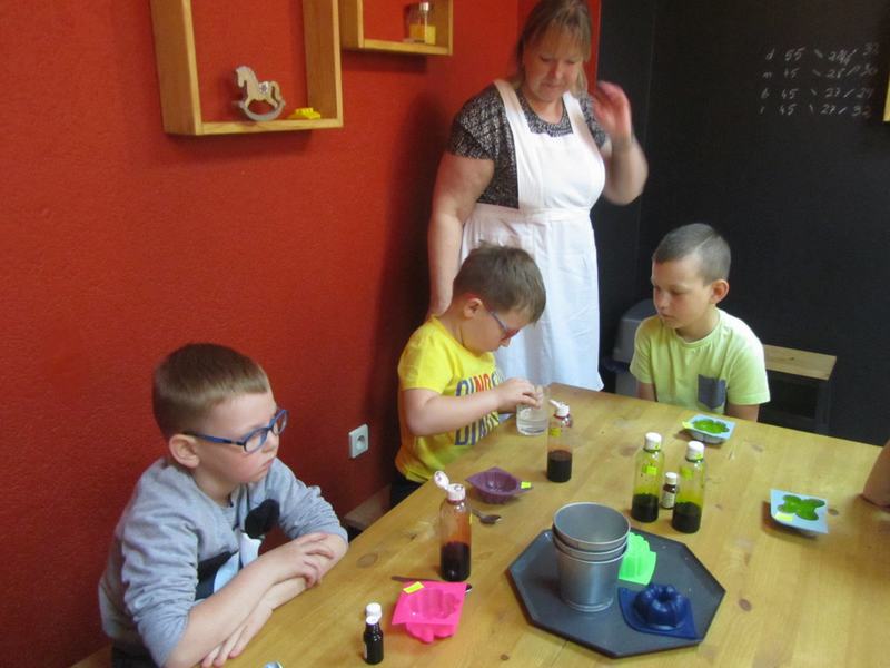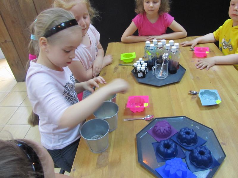 Dzieci z oddziału przedszkolnego pojechały w środę 22 maja na wycieczkę do Ostrowa Wielkopolskiego. Odwiedzili warsztatownię "Mydło i powidło", gdzie wcielili się w naukowców, którzy poznają tajniki robienia mydła. Każde z nich mogło stworzy swoje mydełko, wybierając kształt, kolor, zapach, a także dodatki np. suszoną lawendę, kwiat nagietka. Zwiedziły również "Muzeum brudu i czystości". Mieli okazję spróbować swoich sił w praniu na starodawnych tarach. Po ciekawych zajęciach w "Mydle i powidle" przedszkolaki pojechały na plac zabaw gdzie wesoło bawiły się na zjeżdżalniach i statku pirackim. Na koniec spacerem pod opieką pań dzieci udały się na ostrowski rynek. Zmęczone ,ale zadowolone wróciły do przedszkola gdzie czekali już na nich rodzice.
