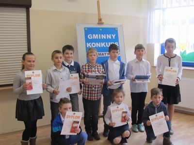 We wtorek 22 marca 2016r. uczeń naszej szkoły Szymon Maciejewski z klasy III brał udział w Gminnym Konkursie Matematycznym organizowanym przez Szkołę Podstawową w Strzyżewie. Uczniowie rozwiązywali test zawierający zadania matematyczne, łamigłówki. Ci, którzy zdobyli czołowe miejsca otrzymali nagrody, pozostali dyplomy.
