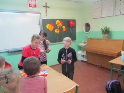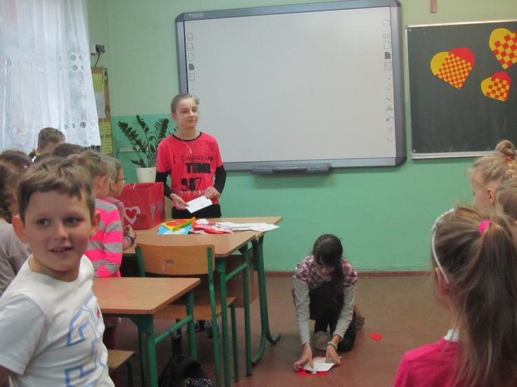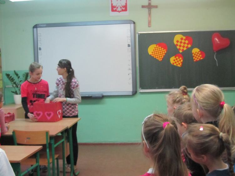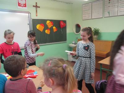 Z okazji Walentynek samorząd uczniowski zorganizował pocztę walentynkową. Chociaż św. Walenty jest patronem zakochanych, to w naszej szkole zakres jego działalności został rozszerzony; dzieci pisały nie tylko do osób, które im się podobają, czy do których czują sympatię, ale również do osób, które lubią lub po prostu chcą im powiedzieć coś miłego lub przekazać życzenia. Magii tego święta dali się unieść wszyscy, od przedszkolaków aż po szóstą klasę. Przedstawiciele samorządu kilka dni odwiedzali poszczególne klasy i zbierali kartki do sporej skrzynki. W poniedziałek 15 lutego wcielili się w role listonoszów i dostarczyli walentynki do adresatów. Wiele kartek było anonimowych, więc odbiorca nie wie, kto jest mu przychylny. Najważniejsze, że liściki wywołały wiele pozytywnych emocji i były okazją do świetnej zabawy.