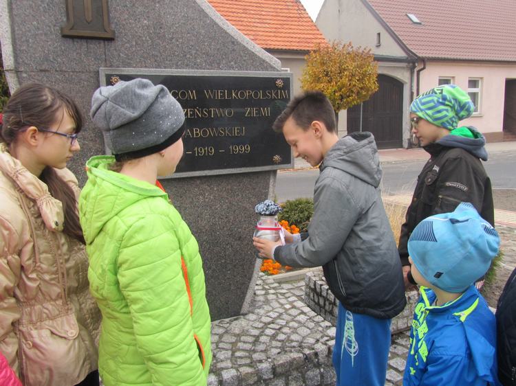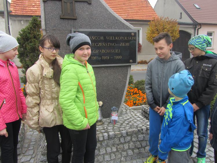 29 października 2015 roku, przed dniem Wszystkich Świętych, dniem zadumy nad przemijaniem, uczniowie naszej szkoły udali się na cmentarz i pod pomnik powstańców wielkopolskich w Grabowie, by oddać hołd tym, którzy zginęli w obronie naszej ojczyzny. W ciszy i listopadowej zadumie dzieci zapaliły znicze na grobach ofiar walki z hitleryzmem. Wyjazd na cmentarz był lekcją, która miała nauczyć dzieci tradycji pielęgnowania pamięci nie tylko o najbliższych, ale także o tych, którzy polegli w walce o wolną Polskę, i którzy nie z własnej winy zostali pozbawieni własnej tożsamości. Dla niektórych dzieci była to pierwsza wizyta w miejscu spoczynku żołnierzy na naszym cmentarzu.