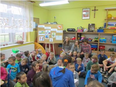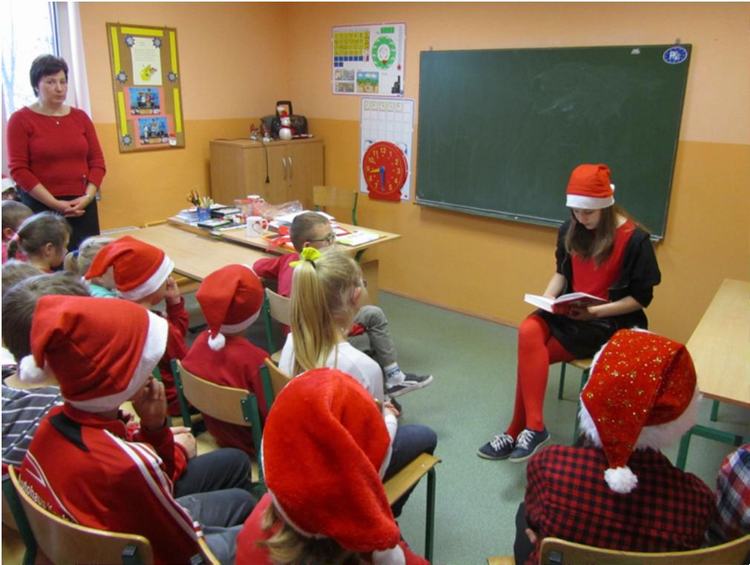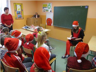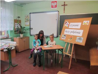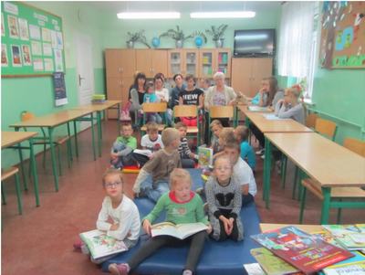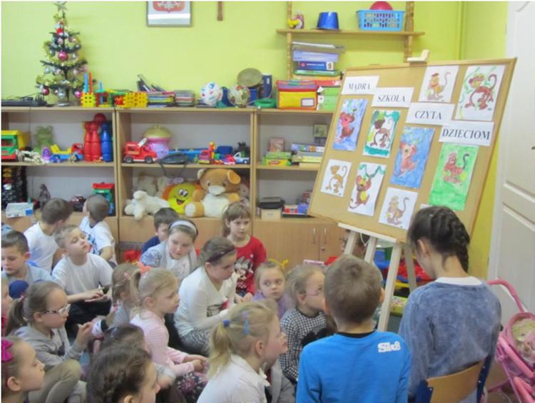 Doceniając zalety wspólnego czytania w naszej szkole przez cały rok szkolny trwała akcja pod hasłem "Mądra szkoła czyta dzieciom". Każdego miesiąca starsi uczniowie czytali swoim młodszym koleżankom i kolegom utwory związane tematycznie z odpowiednim miesiącem.