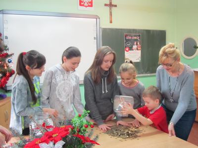 Dzieci z oddziału przedszkolnego, wszyscy uczniowie, rodzice oraz nauczyciele zaangażowali się w zbieranie pieniędzy.