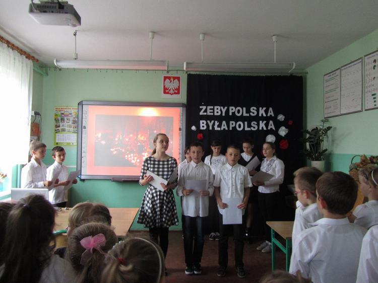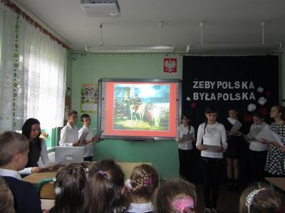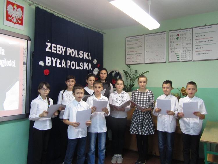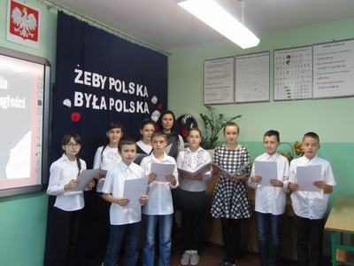 10 listopada 2014 roku odbył się w naszej szkole apel upamiętniający 96 rocznicę odzyskania przez Polskę Niepodległości. Uczniowie klas IV - VI przybliżyli swoim kolegom i koleżanką długoletnie walki, starania i dążenia Polaków do odzyskania własnej ojczyzny i pojawienia się jej na mapie świata po 123 latach niewoli. Wierszom i pieśniom towarzyszyła prezentacja multimedialna przedstawiająca wydarzenia tego okresu oraz portrety wybitnych Polaków, którzy przyczynili się do odzyskania polskiej wolności.