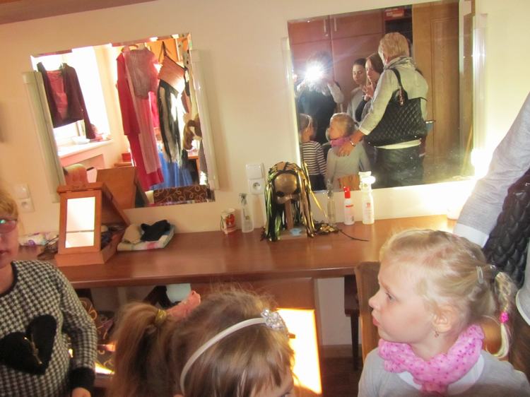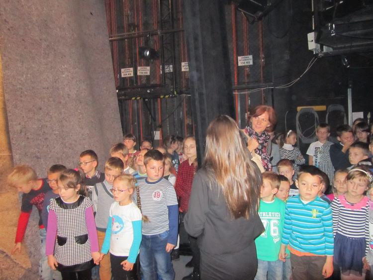 Po spektaklu uczniowie naszej szkoły mogli zobaczyć tajemnice teatralnych kulis. Wędrując z panią przewodnik zapoznali się z historią teatru i zobaczyli aktorskie garderoby. Największe wrażenie wywarła jednak na wszystkich scena główna teatru oraz usytuowanie miejsc widowiskowych .