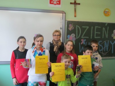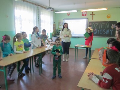 Obchody Dnia Wiosny zorganizowała Izabela Giwerska - opiekun Samorządu Uczniowskiego razem z wychowawcami klas I - VI panią B. Grygowską, A. Piątkowską - Moś, J. Podlas i R. Zalejską.