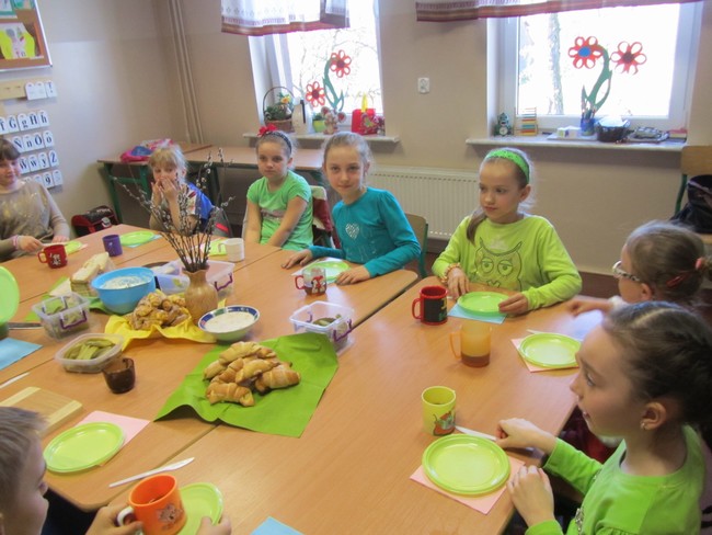 Zabawa rozpoczęła się wspólnym śniadaniem, podczas którego uczniowie przygotowali tradycyjne potrawy wielkopolskie.