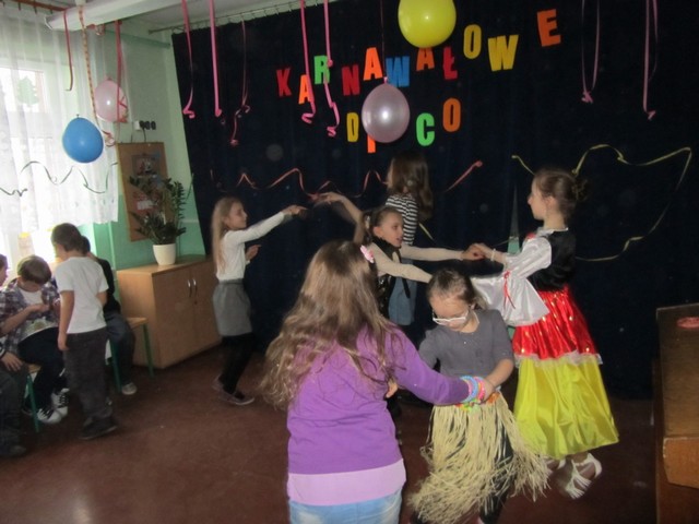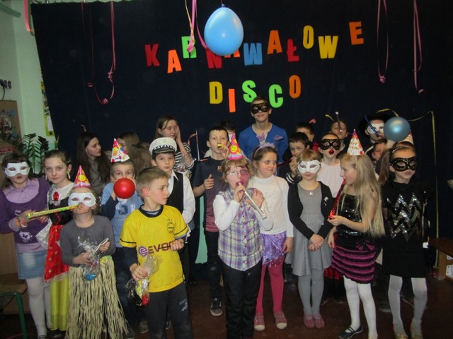 Dnia 30 stycznia 2014r. odbyła się w naszej szkole dyskoteka karnawałowa dla uczniów klas I-VI. Rodzice okazali się niezastąpieni, dzięki swej pomysłowości wyczarowali przepiękne stroje dla swoich pociech szczególnie z klas I i II.
