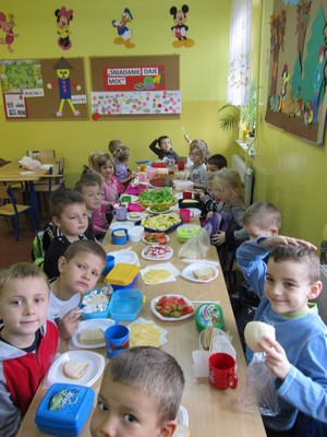 Wcześniej przeprowadzona została pogadanka o znaczeniu tego posiłku dla zdrowia i rozwoju dzieci.