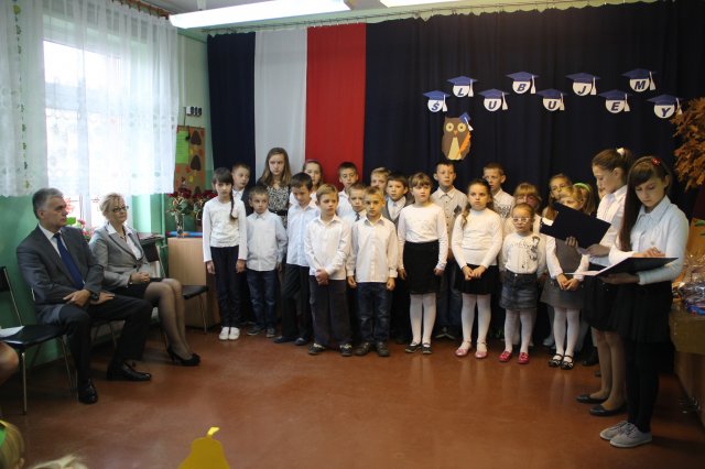 Pierwszoklasiści i przedszkolaki pod kierunkiem swoich wychowawczyń: Beaty Grygowskiej i Małgorzaty Nowackiej przygotowali część artystyczną, która zachwyciła gości.