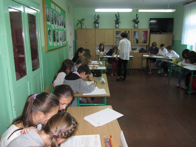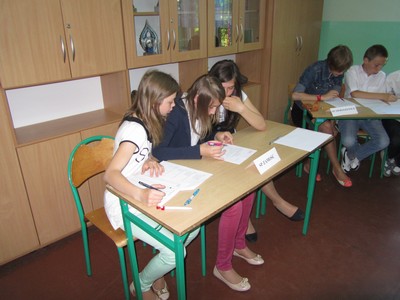 Uczestnicy rozwiązywali test, który zawierał zadania zamknięte oraz anagramy matematyczno - przyrodnicze.