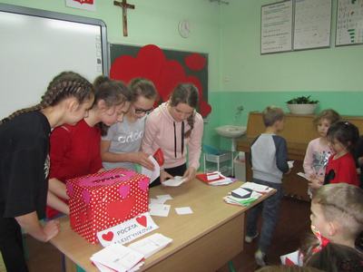 Czwartek 14 lutego upłynął w naszej szkole w atmosferze miłości i przyjaźni. A wszystko to za sprawą Walentynek. Jak co roku, Samorząd Uczniowski zorganizował pocztę walentynkową. Wszyscy uczniowie mogli przesłać sobie słowa sympatii dzięki specjalnie utworzonej walentynkowej poczcie. Każdy w głębi serca miał nadzieję, że kartka z deklaracją sympatii dotrze również do niego, bo jak tu nie dostać walentynki w Dzień Świętego Walentego? Na szczęście wszyscy otrzymali walentynki.
