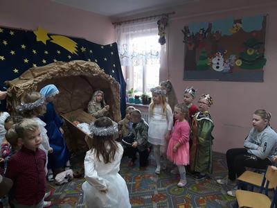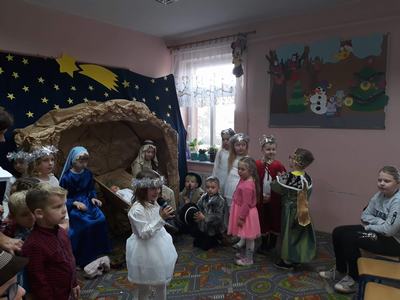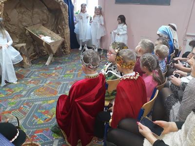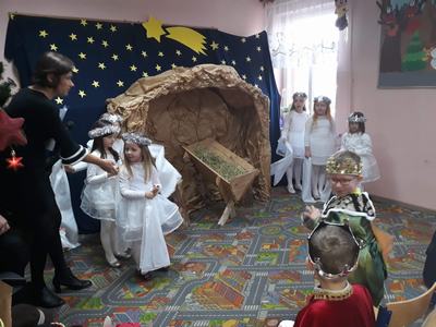 (2018-12-19) Dzieci z oddziału przedszkolnego przedstawiły w dniu 19 grudnia jasełka pt. "W śród nocnej ciszy".