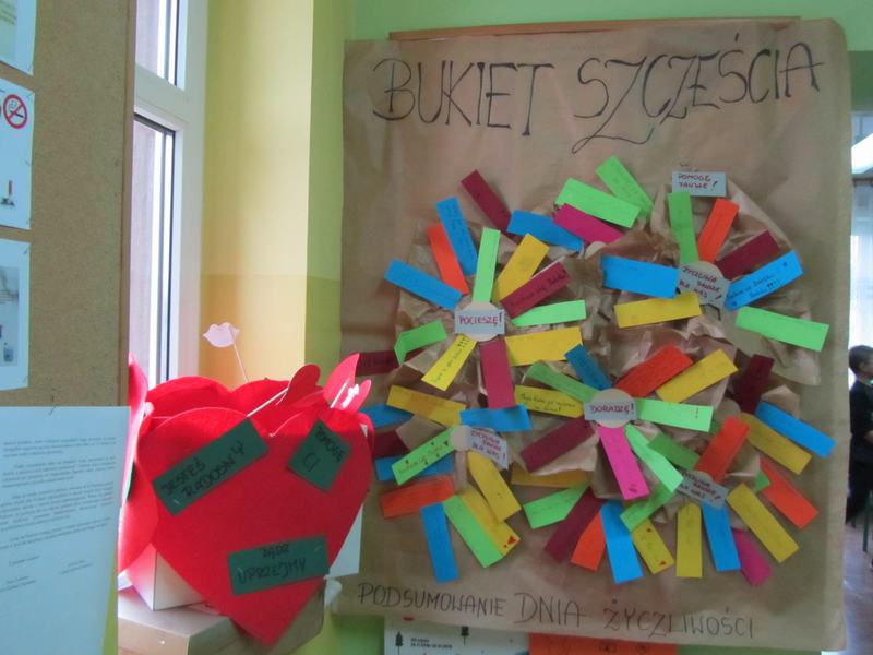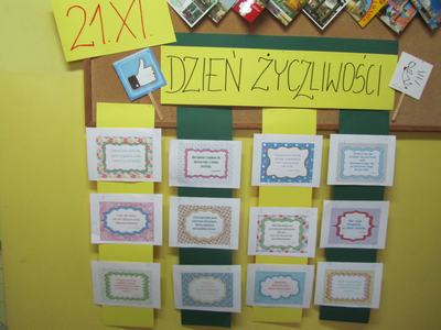 W poniedziałek 23 listopada 2018 r. obchodziliśmy w naszej szkole to wspaniałe święto. Był to dzień wyjątkowy... pełen uśmiechów, dobrych uczynków, miłych słów, gestów, pozytywnych emocji. Było radośnie i życzliwie . Ten dzień był okazją do rozmów na temat tego, jak być życzliwym, jak okazywać życzliwość w różnych sytuacjach i miejscach . Obchodom towarzyszyły ciekawe quizy, poczta życzliwości i plakat "Bukiet szczęścia".