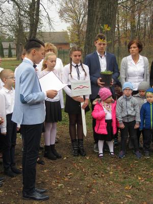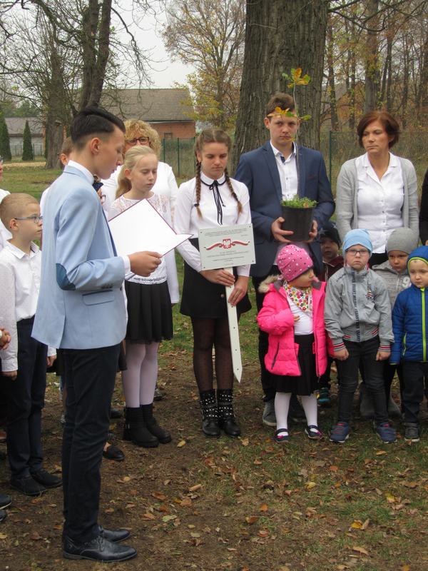 Po akademii, nawiązując do wielowiekowej tradycji sadzenia przez społeczeństwo drzew - przede wszystkim dębów - uosabiających siłę, długowieczność i nieprzemijającą pamięć o ważnych wydarzeniach w historii naszego Narodu, cała społeczność szkolna udała się posadzić Dąb Niepodległości.