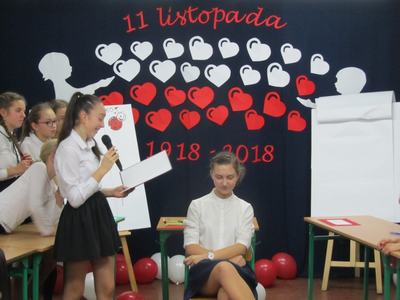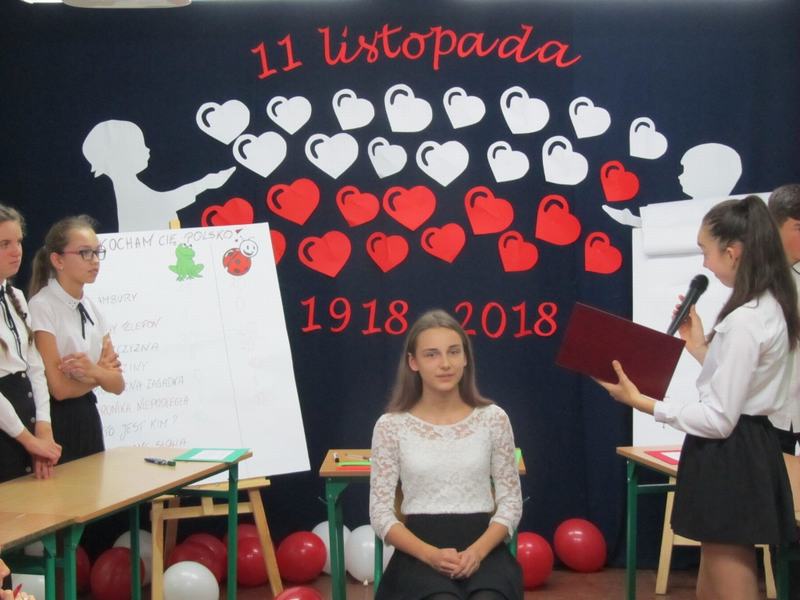 100. rocznicę odzyskania przez Polskę niepodległości w Szkole Podstawowej w Zamościu uczczono w piątek 9 listopada uroczystą akademią. W montażu słowno-muzycznym uczniowie zaprezentowali wybrane zagadnienia z rozbiorowej historii Polski. Przypomniano najważniejsze daty i fakty dotyczące 123-letniej niewoli Ojczyzny. Wiadomości historyczne przeplatane były pięknie wyrecytowanymi fragmentami poezji. Nie zabrakło również pieśni patriotycznych:"Piechota", "My Pierwsza Brygada", "Wojenko,wojenko", "Przybyli ułani", "Ojczyzno ma". Podniosłą atmosferę podkreśliła gra na skrzypcach, scenografia, galowe stroje oraz wyśpiewana przez występujących pieśń radości "Gaudeamus igitur". Prawdziwa powaga i zaangażowanie uczestników spotkania - to świadectwo szacunku dla historii i dziejów naszego narodu, to współczesny wyraz patriotyzmu.