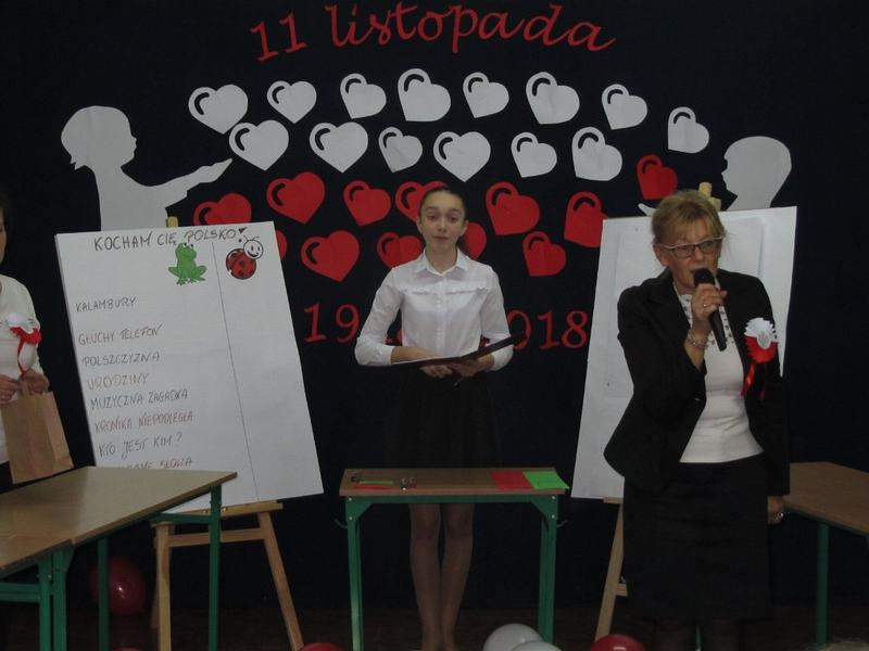 Następnie odbył się turniej "Kocham Cię, Polsko". W zabawie z polskimi akcentami wzięli udział uczniowie klas II - VIII, tworząc dwie drużyny oraz rozśpiewaną i głośną widownię, kibicującą wybranym zespołom.