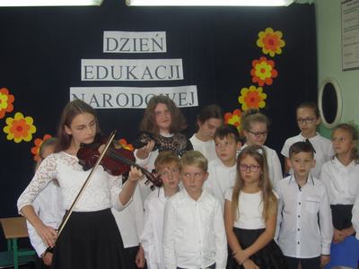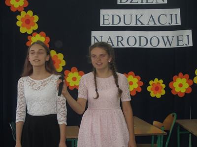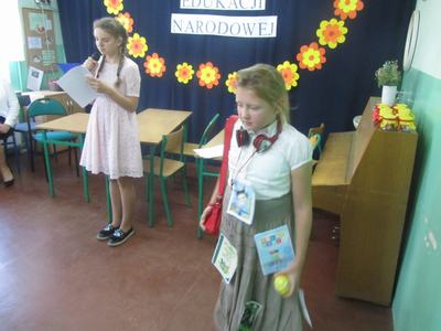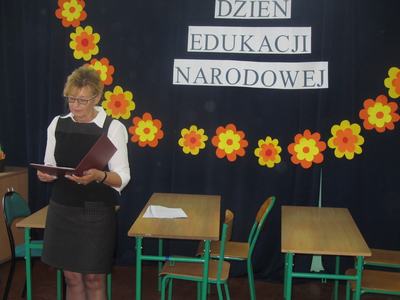 W Dniu Edukacji Narodowej miłych akcentów w naszej szkole było wiele. Galowe stroje, symboliczne róże w uczniowskich dłoniach zwiastowały atmosferę szkolnego święta. Uroczystość utrzymana była w humorystycznej konwencji. Pokaz mody dla nauczycieli oraz odgrywane scenki rodzajowe pokazywały szkołę widzianą oczyma nauczycieli i uczniów. Dowcipne dialogi ukazywały pracę nauczyciela jako tę, która dostarcza wielu emocji, ale też wymaga odporności, charakteru i nierzadko fantazji niezbędnej w działaniach na płaszczyźnie nauczyciel i uczeń, jak sami przyznali ci ostatni, są to dwa przeciwne bieguny. Jak się okazuje humorystyczne scenki, dowcipne dialogi nie wykluczają szacunku do pracy nauczyciela. Nie zabrakło również wierszy przeplatanych piosenkami. Uroczystość podsumowała pani dyrektor, dziękując uczniom i opiekunom za przygotowanie uroczystości oraz życzyła wszystkim nauczycielom przede wszystkim cierpliwości i dobrych pomysłów na ciekawy sposób przekazywania uczniom wiedzy.