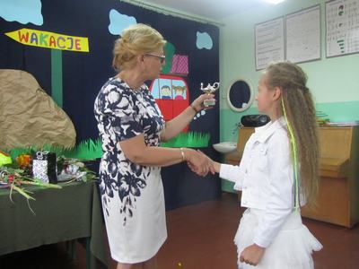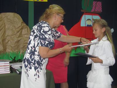 Trzech uczniów: Aleksandra Moś z klasy VI, Julia Spalona z klasy V i Miłosz Spalony z klasy IV za wybitne osiągnięcia w nauce otrzymały listy gratulacyjne oraz nagrody książkowe od Członka Zarządu Województwa Wielkopolskiego - pani Marzeny Wodzińskiej.