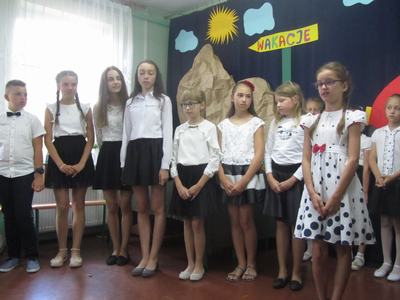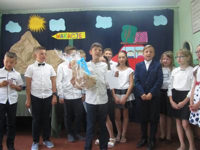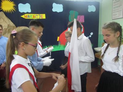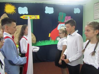 Końcowym wydarzeniem części oficjalnej było przekazanie flagi narodowej nowemu pocztowi flagowemu, który będzie nią opiekował podczas uroczystości w kolejnym roku szkolnym. Uroczystość zakończył krótki występ artystyczny przygotowany przez uczniów klas IV - VII, po którym nastały długo wyczekiwane wakacje!!!