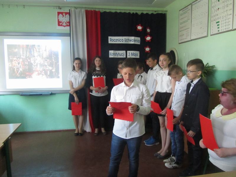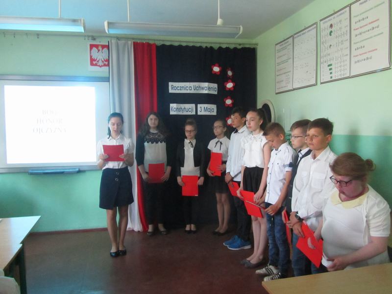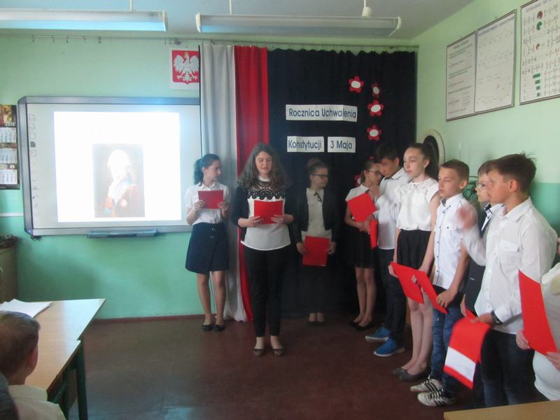 W bieżącym roku minęła 227 Rocznica Uchwalenia Konstytucji 3-go maja. By uczcić pamięć, w naszej szkole 30 kwietnia 2018r. odbył się uroczysty apel. Uczniowie klas IV-VI wraz z opiekunem Jolantą Podlas przygotowali krótką część artystyczną.