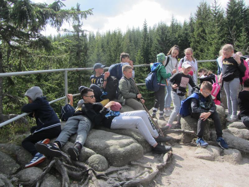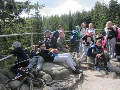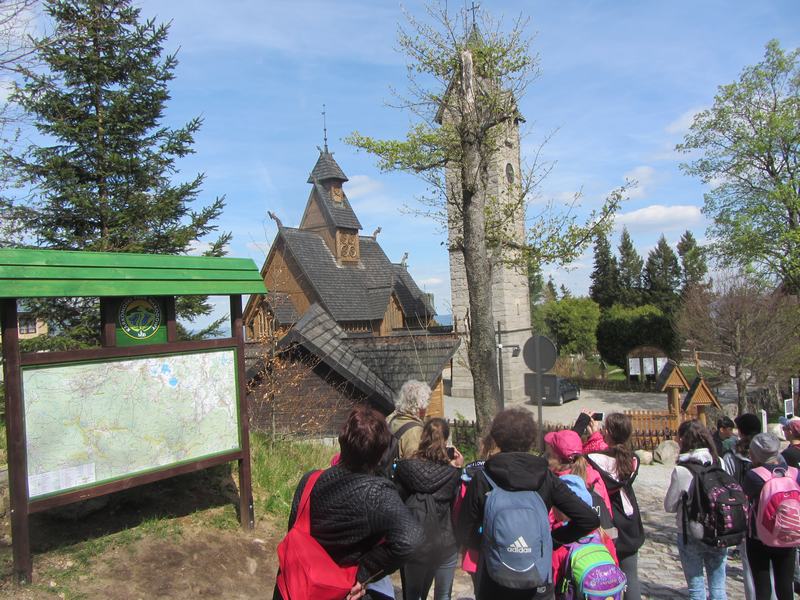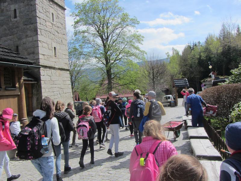 W dniach od 26 do 27 kwietnia uczniowie naszej szkoły zwiedzali Karpacz i Szklarską Porębę. Główną atrakcją pierwszego dnia wycieczki było wejście na zamek Chojnik oraz przejście do Wodospadu Szklarki, który bardzo się nam podobał. W drugim dniu mogliśmy podziwiać Świątynię Wang - to ewangelicki kościół parafialny przeniesiony z Norwegii. Został zbudowany z drewna bez użycia gwoździ. Następnie wyruszyliśmy w góry szlakiem prowadzącym przez Karkonoski Park Narodowy. Po drodze uczniowie podziwiali przepiękne krajobrazy i widoki. Dotarliśmy do schroniska Samotnia nad Małym Stawem. Uczestnikom wycieczki na długo pozostanie w pamięci noc spędzona w ośrodku "Karpacz" oraz urokliwe widoki zwiedzanych miejscowości. Wycieczka wszystkim się podobała. Dostarczyła wielu wrażeń i pozostawiła wiele miłych wspomnień.